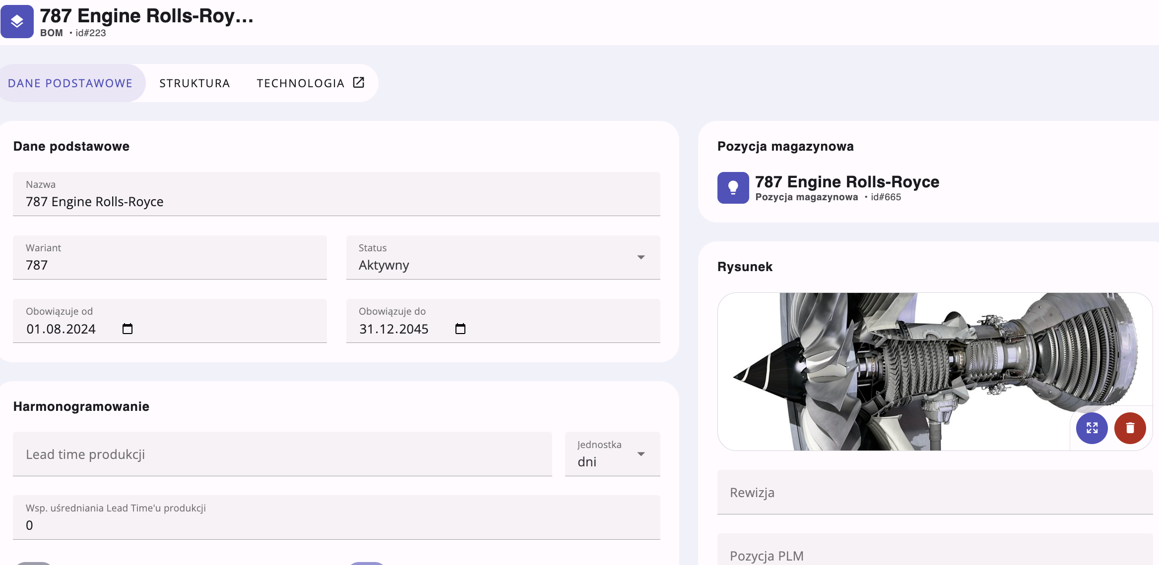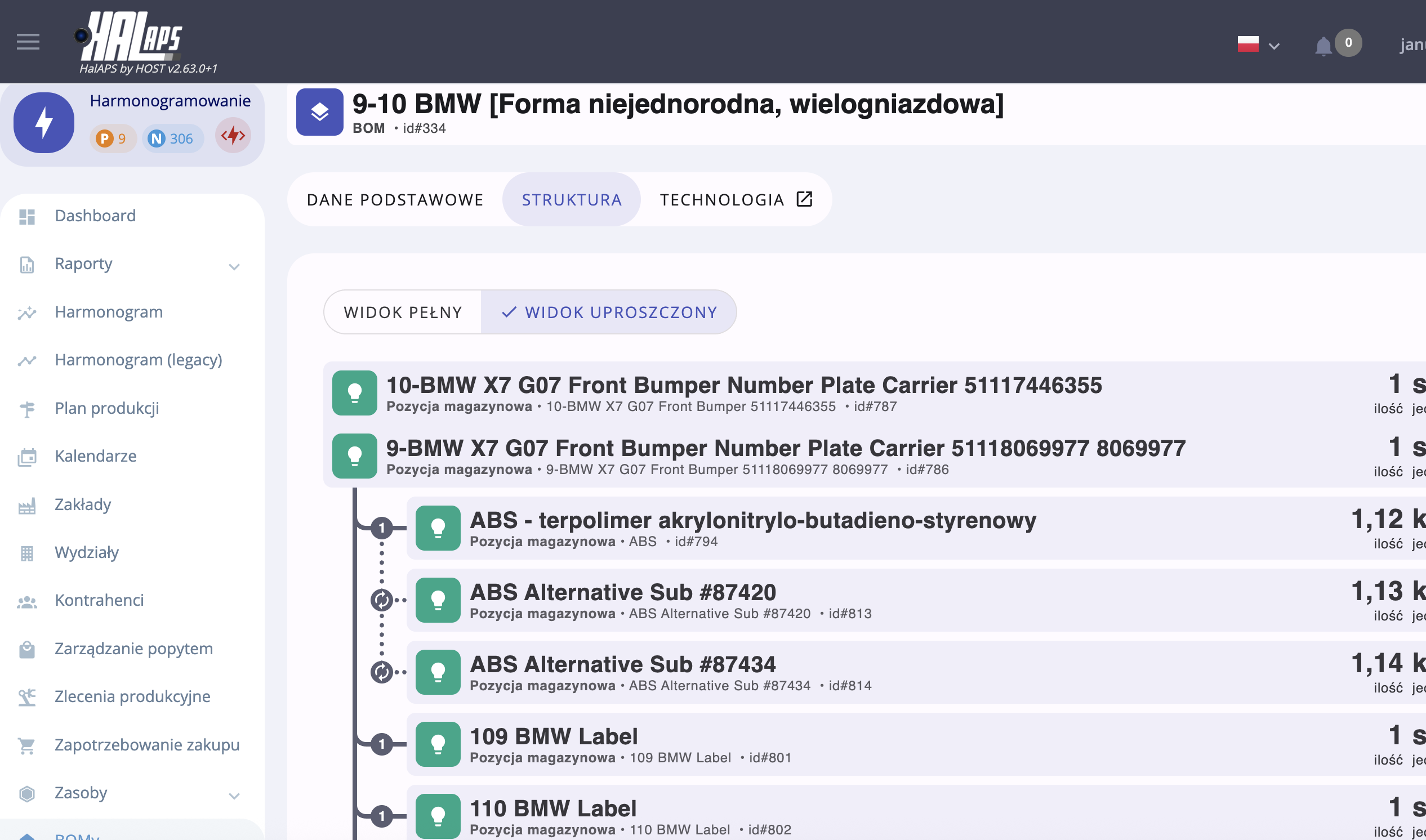 HAL APS can build complex, multi-level BOMs characteristic of complex products. Unlimited number of levels, unlimited number of semi-finished products, unlimited number of versions / revisions. Linking to PLM, CAD, drawing item.