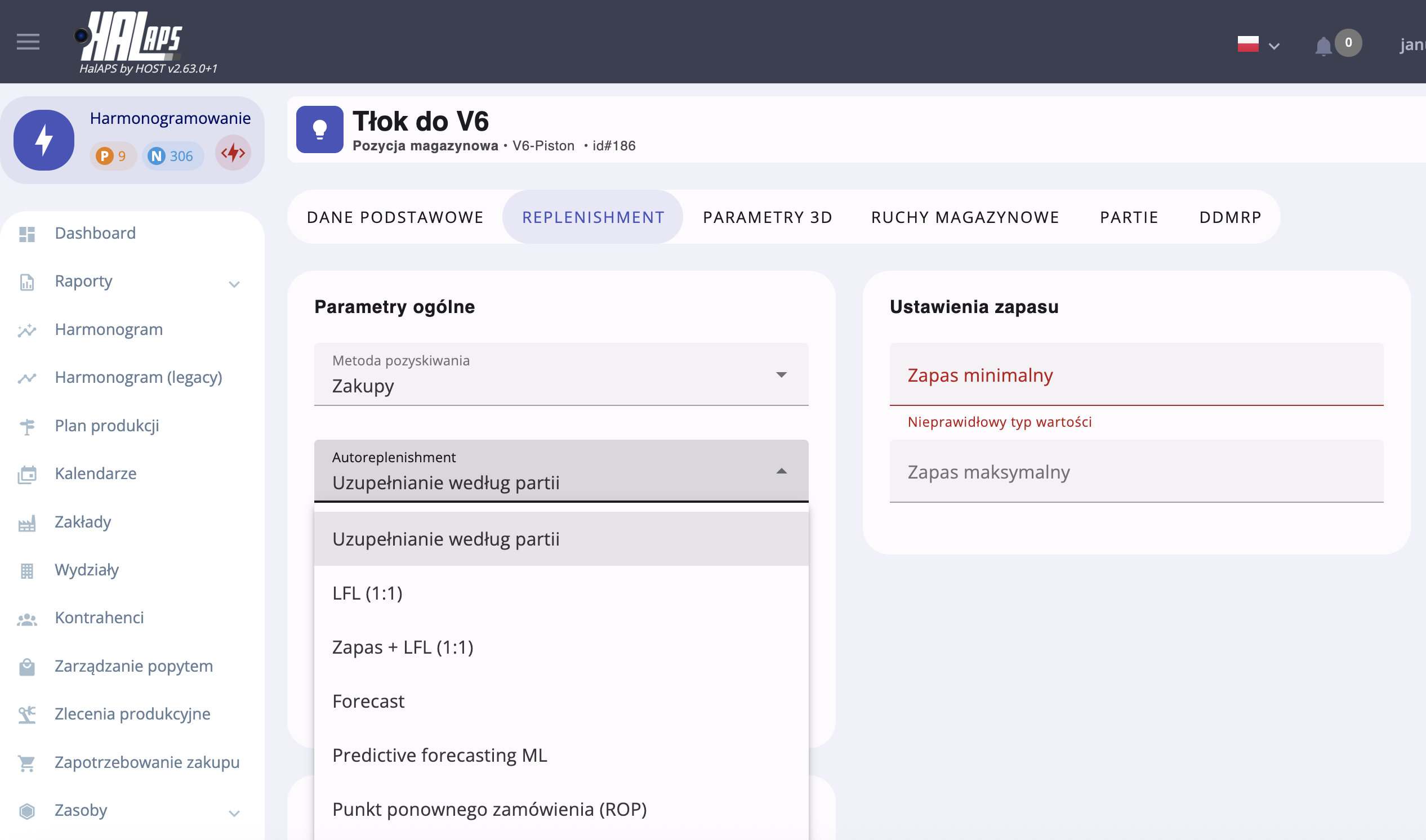 HAL APS can manage auto-replenishment of production and purchase items. Project replenishment 1:1, stock + 1:1, batch replenishment, reorder point, target stock level, forecast, Machine Learning, DDMRP, batch replenishment orders.