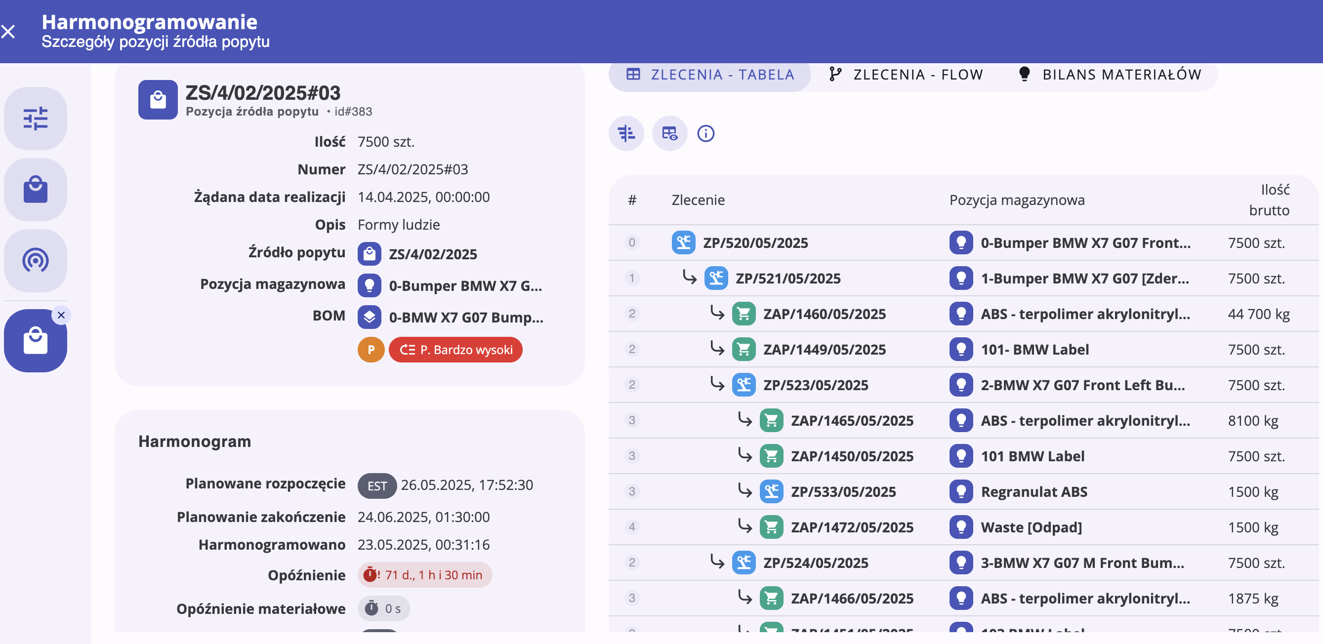Full control of production timeliness, increasing OTED - on-time deliveries. HAL APS always responds with a specific sales order execution date. HAL assumes ZS variability.