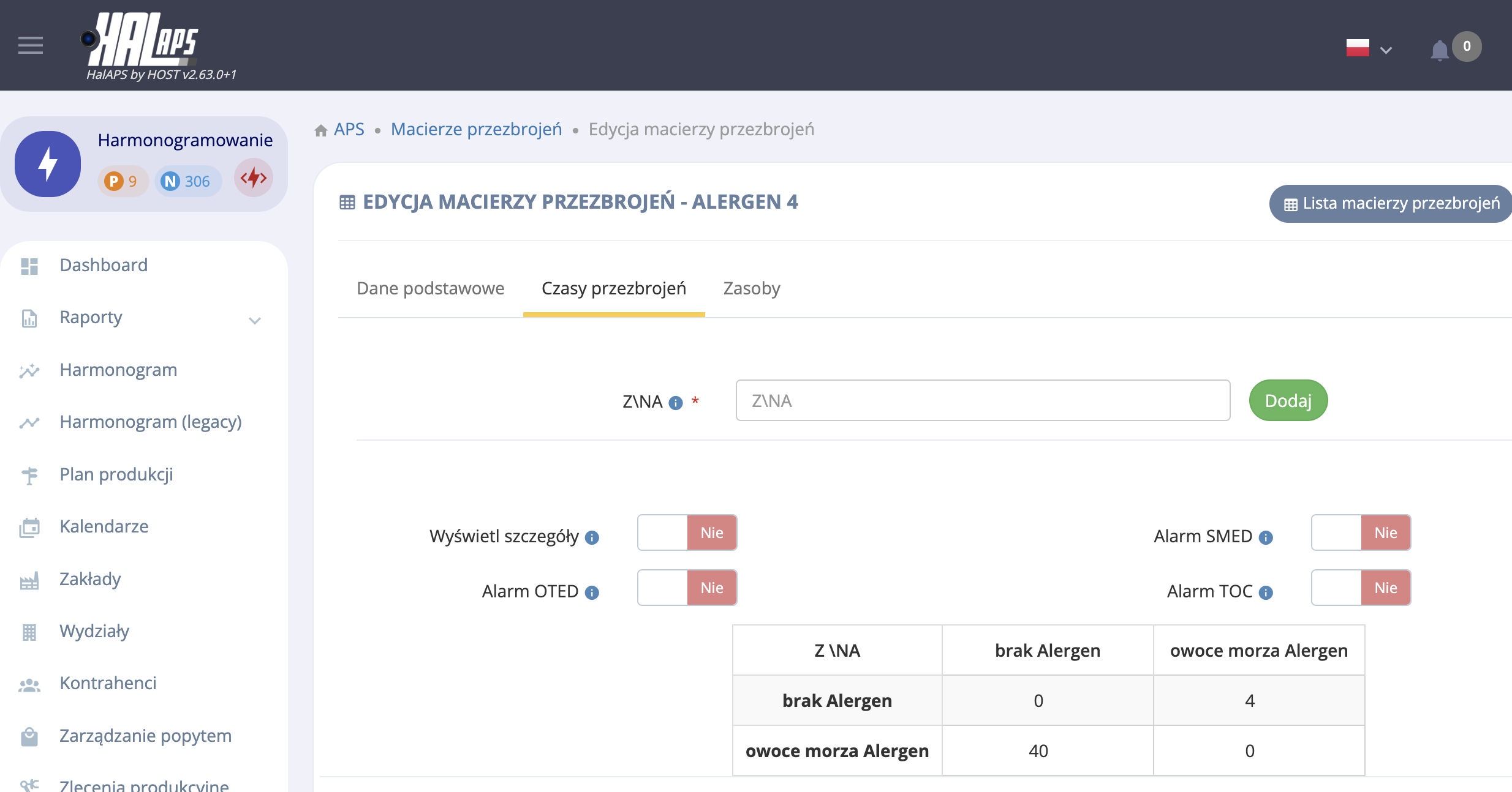 HAL APS can analyze the production sequence and change the changeover time. The actual changeover time is a combination of the time depending on what was produced before and what is to be produced now. It is also important what tooling, tools were before and what will be now.