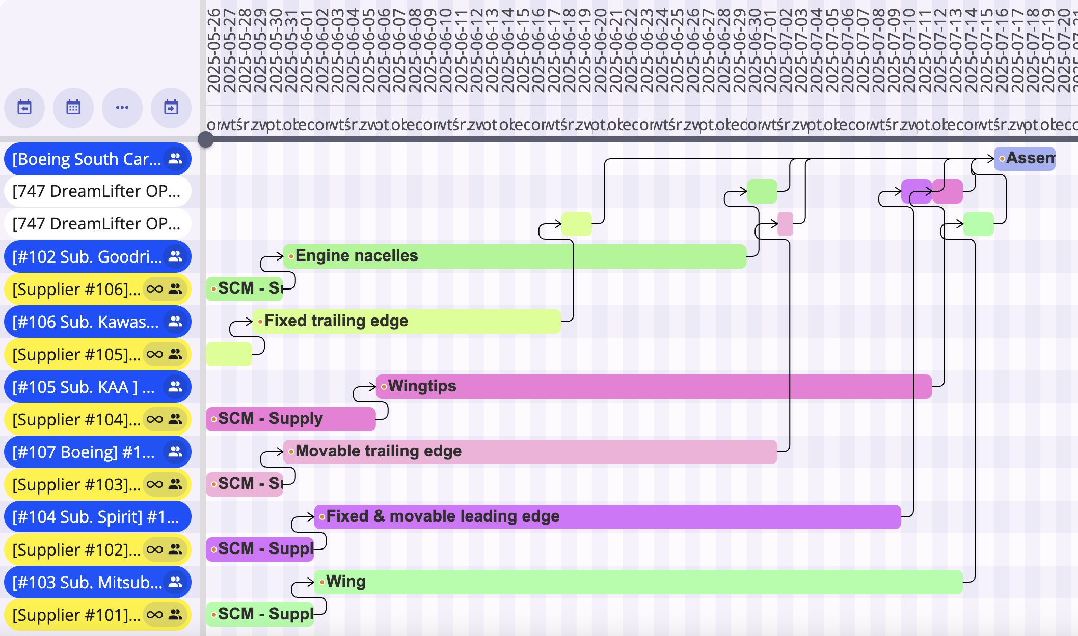 HAL APS will precisely plan technological operations performed in cooperation. It can also plan transport to and from the cooperator. We can model the supply chain of plants operating on different continents in different time zones, with different holiday calendars.